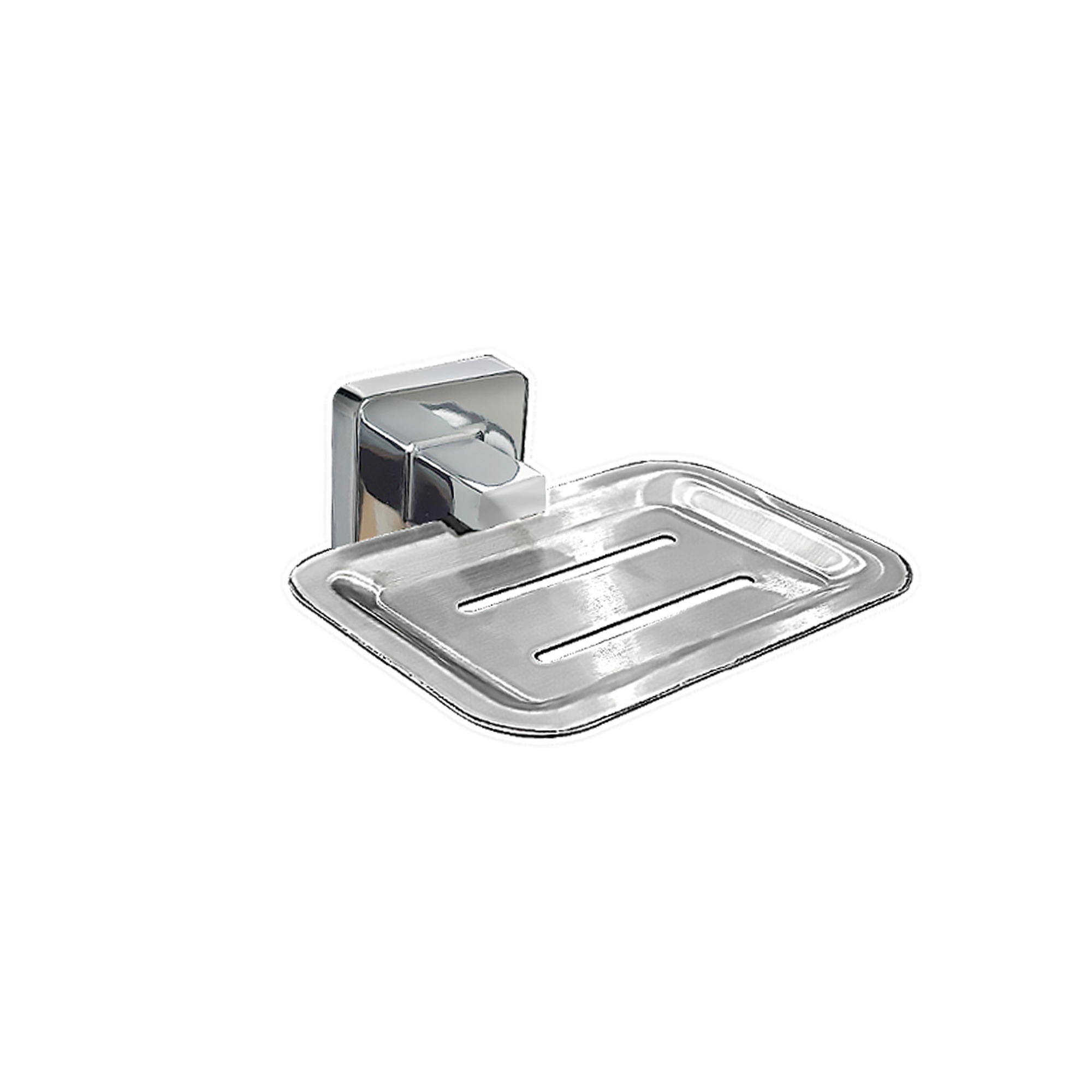 • Materiais: suporte para sabonete em aço inoxidável 304, base em zamak, disco de fixação em aço inoxidável e fixadores em aço carbono galvanizado e plástico de engenharia;